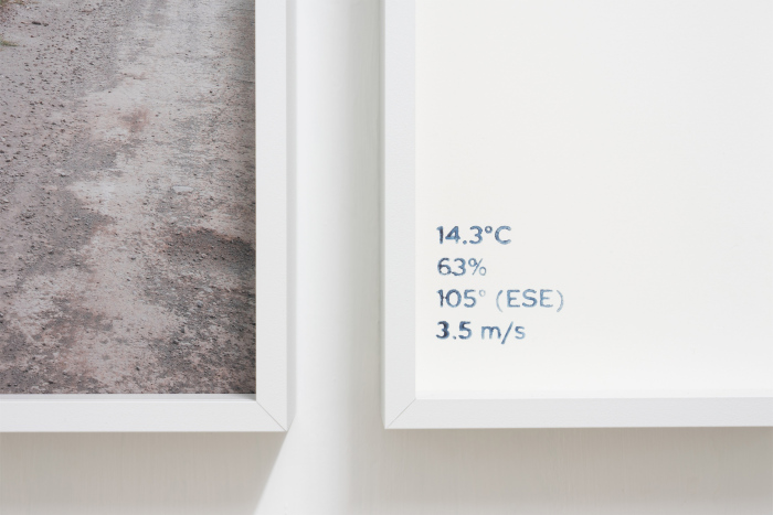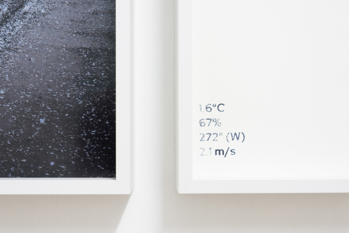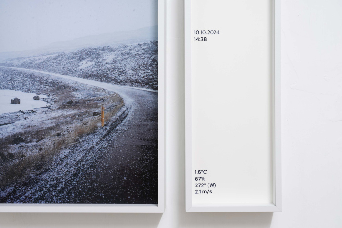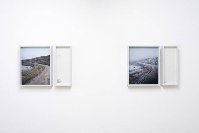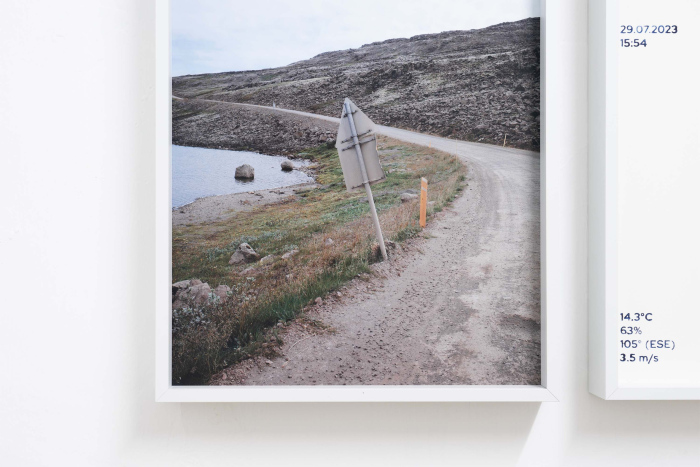 Dynjandi (The Sign) is an extension of a growing archive containing photographic images of the back of road signage and weather data collected from the nearby meteorological stations in Iceland. The project stemmed from WU’s fascination with the shifting weather and his observation of how its protean nature covertly and fiercely leave traces on the rear part of the road sign, making it a dynamic piece that is incessantly affected by the surrounding atmospheric conditions. Spanning over a year, WU returned to the exact location where he once stumbled upon a crooked sign — against all odds would one anticipate — only to find it completely vanished into thin air. Begetting the notion of (in)visibility and liminality through pairing as well as the fading text as juxtaposed, the changing (dis)appearance ultimately sets up the work’s conceptual parameters — it simultaneously records a state and soon gets overwritten, drawing an impermanent analogy to the signage, weather, act of image-making and c-print process per se.