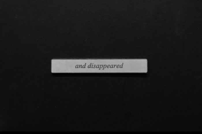 Inkjet print on Hahnemühle Photo Rag Ultra Smooth paper, engraved steel plaque mounted on the leftmost backing board that reads ‘and disappeared’