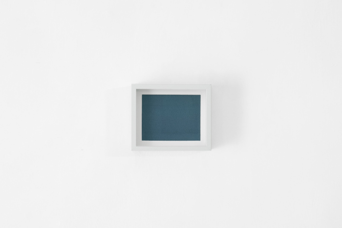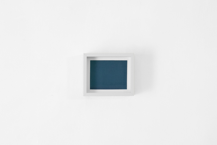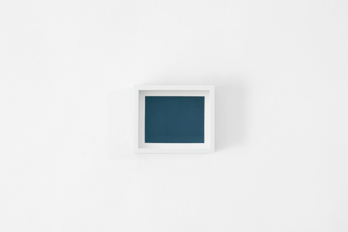 Navigating towards a sense of origin and materiality in photography, Untitled (2023) is a transitory work that inhabits the space and morphs itself into a field of Prussian blue as time wears on. Without fixing the light-sensitive emulsion, the photogram becomes an object which has transmuted itself into a perishable event that is in direct and constant contact with the ambient environment. Not only does the transition on the surface highlights and intensifies the presence of the place, the withdrawal of imprinted subject has also stripped photography away from its archetypal function to retain a captured moment, the time-based photographic reading therefore subverts the common reception of photography as a completed piece.